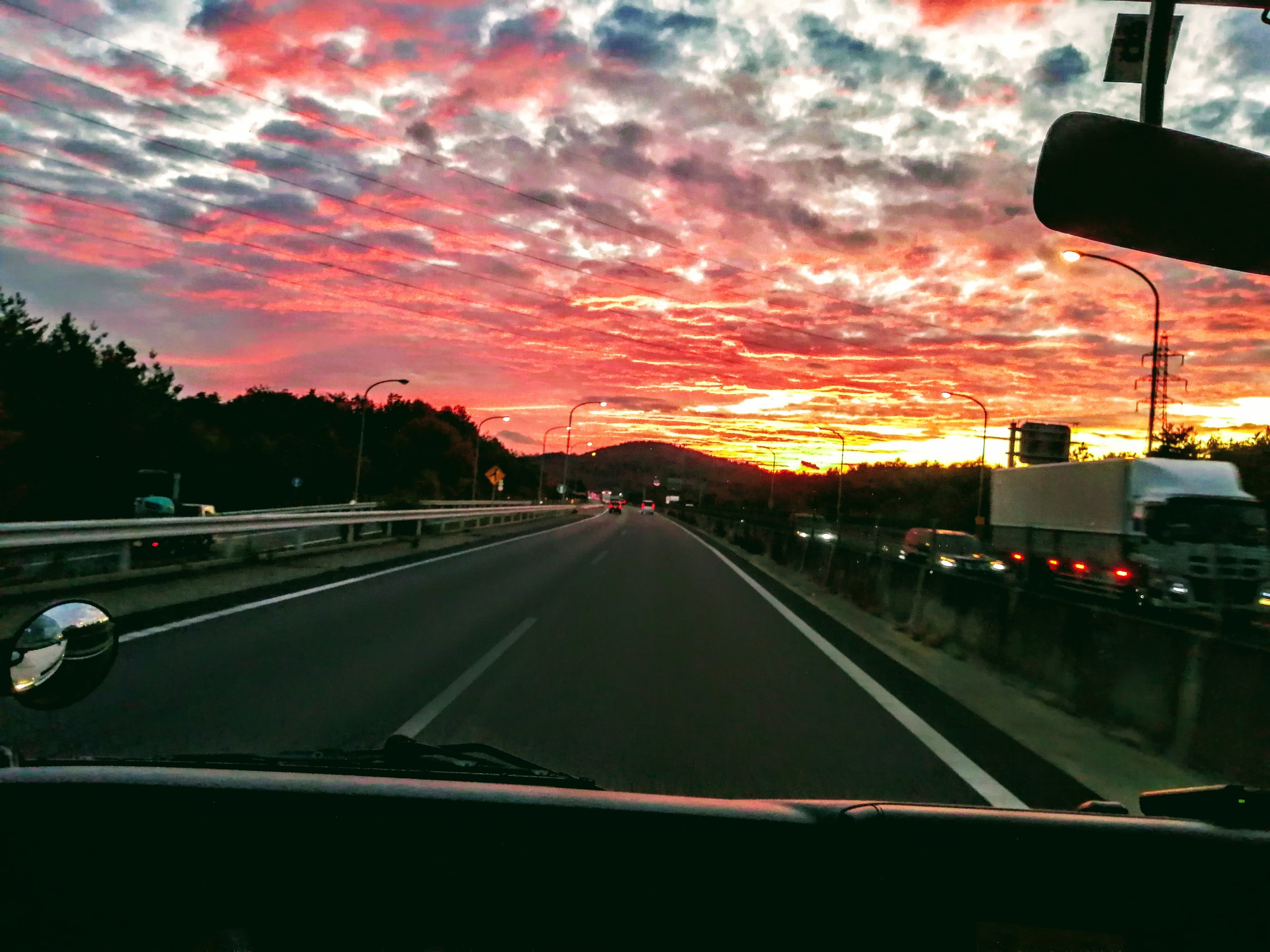 4時間ほどのドライブですが、夕焼けがキレイ!