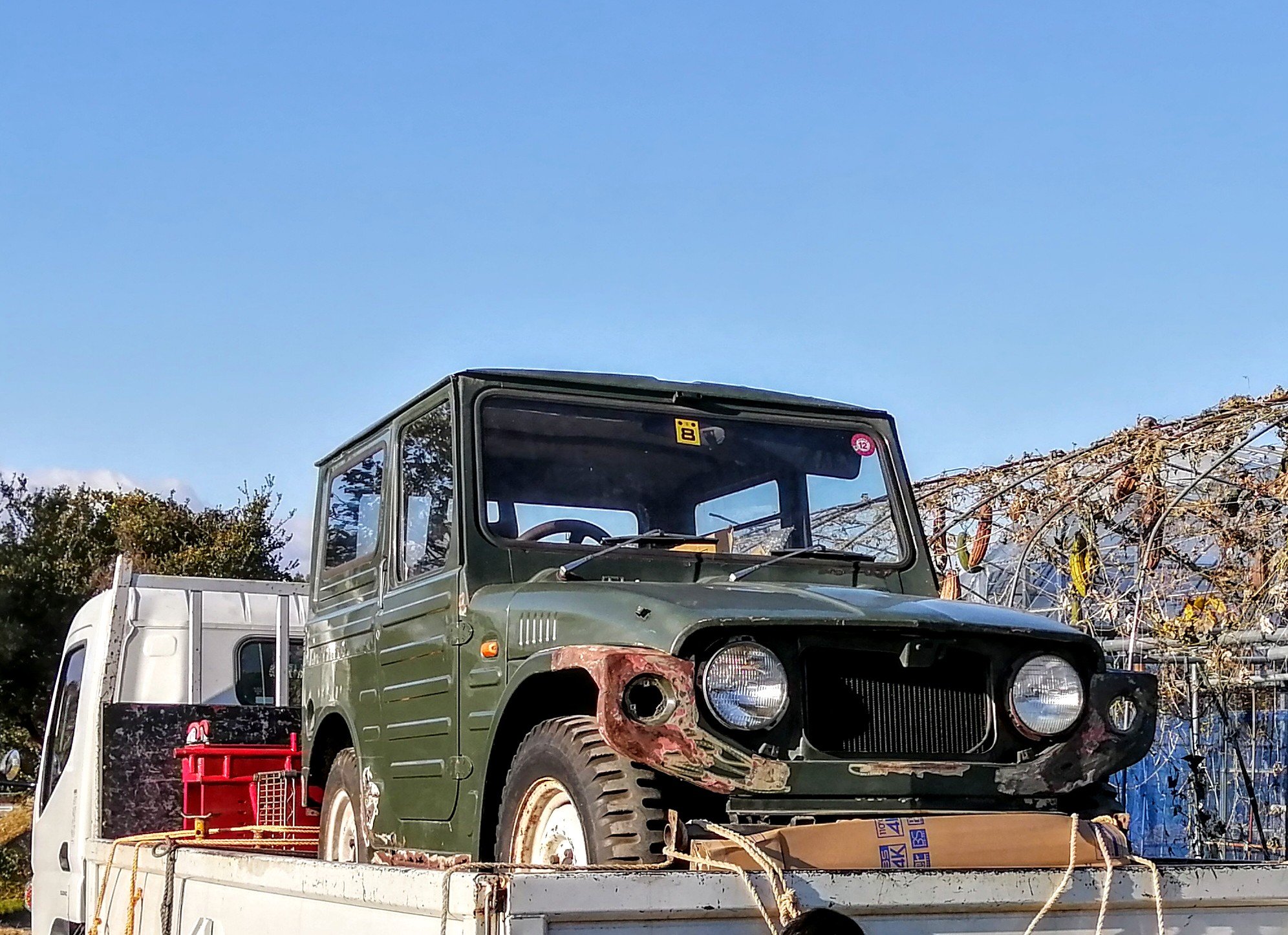 今朝までエンジン始動していたジムニーは、いざ載せようとしたら、エンスト