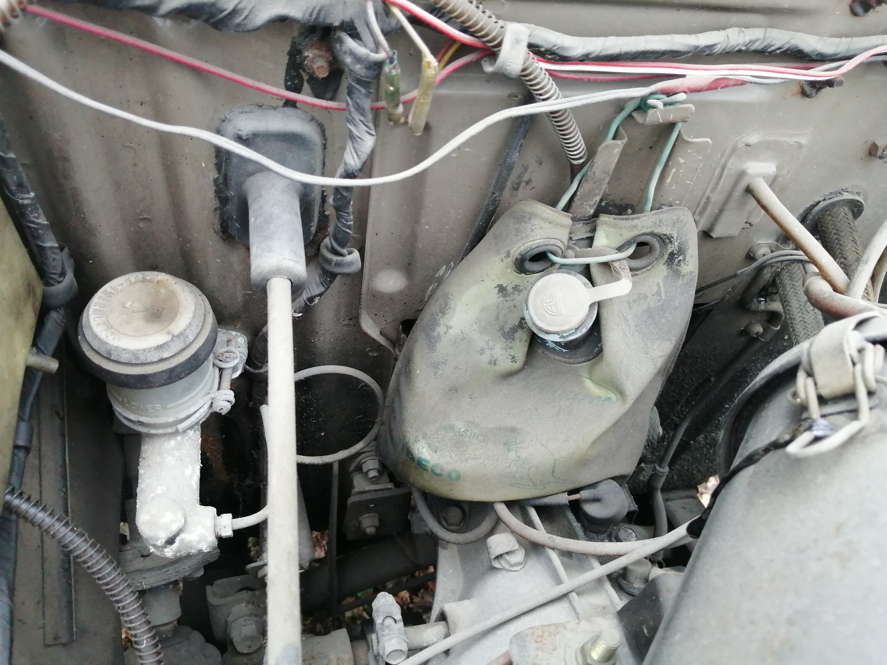 ウォッシャー液がビニール袋?にはいってぶら下がっています!その右側に室内ヒーターのホースが伸びていますね。冬場も快適??