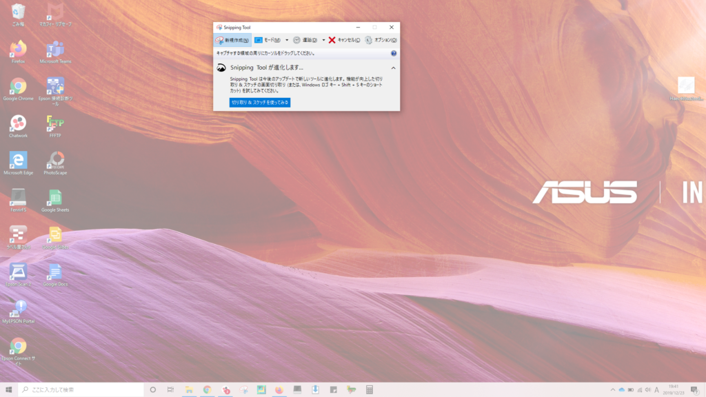 画面キャプチャの方法ですが、個人的に試した中で、おにぎり🍙よりWIndows10に標準ではいっているSnipping Toolのほうが使いやすいので、こちらをお勧めします。