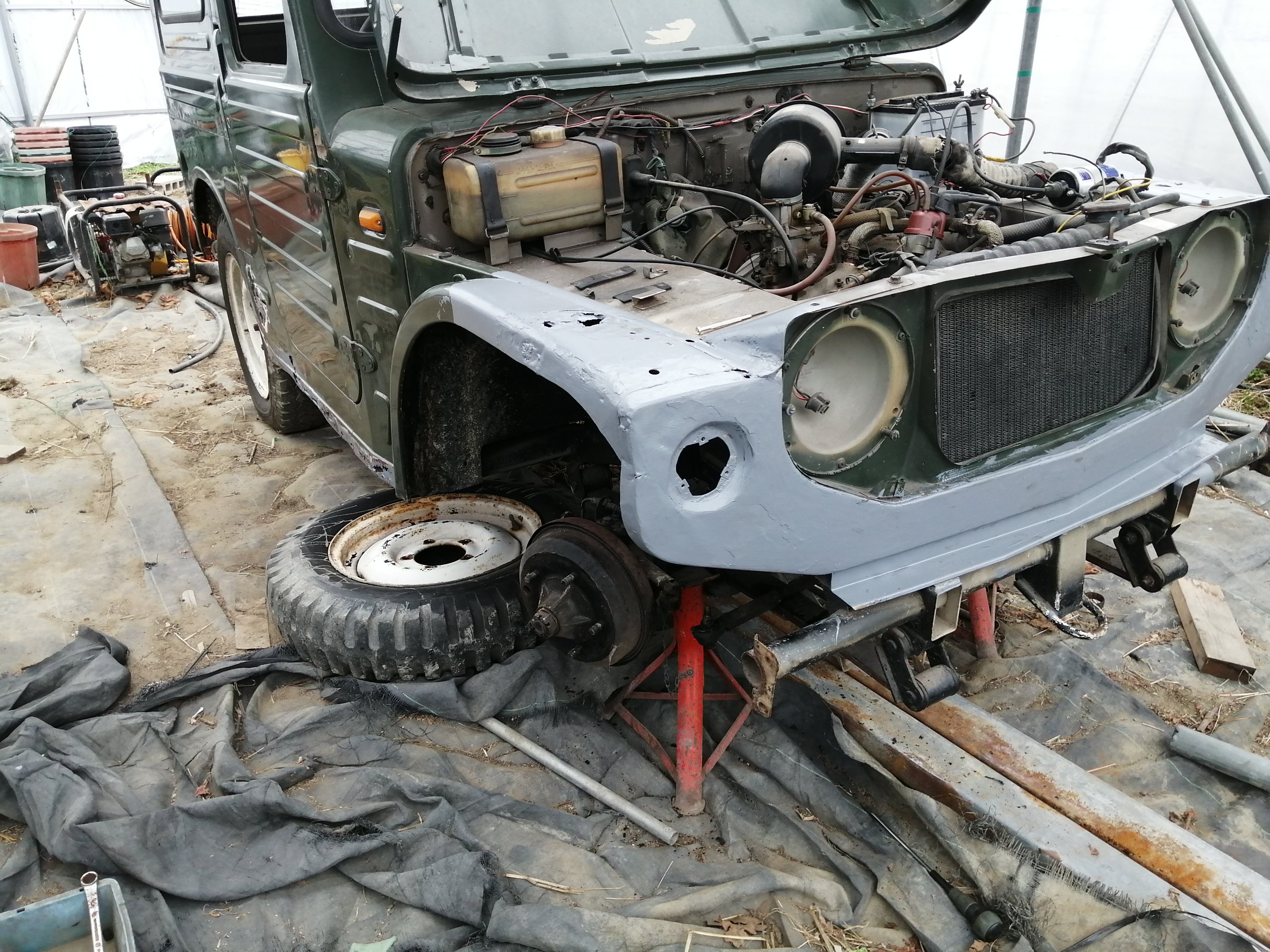 内側作業しにくい、とはいっても、車高高いし、エンジンルームも隙間たくさんなので、作業はKBAAポーターより楽々です。