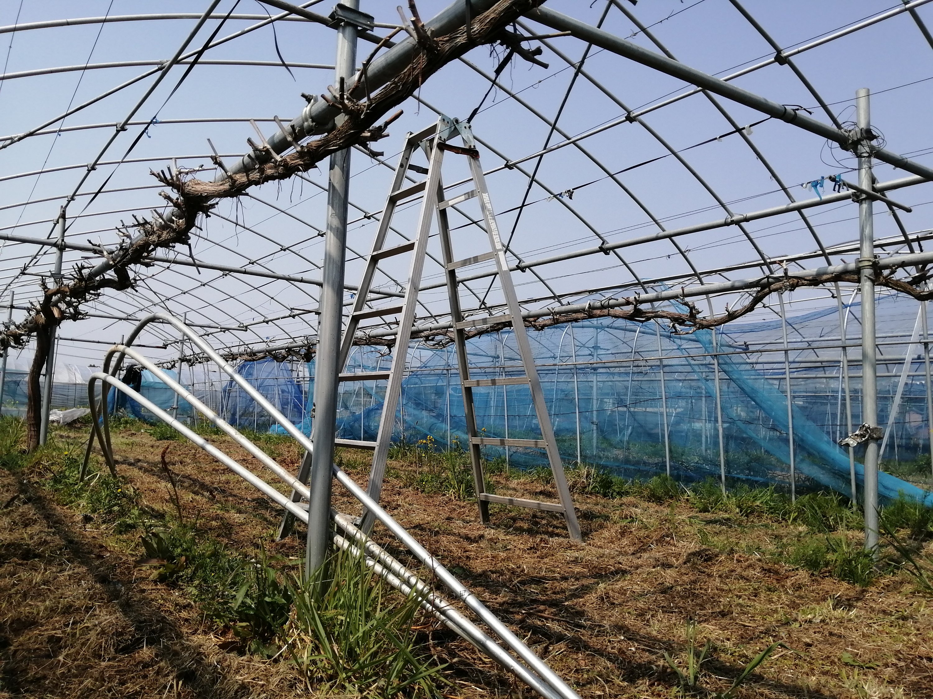課題だった大きいハウスへの被覆も終わり、のこすところ、被覆は間口5.4mx20mの担当ハウス2棟と、敗れた箇所をいくつか修繕だけです。