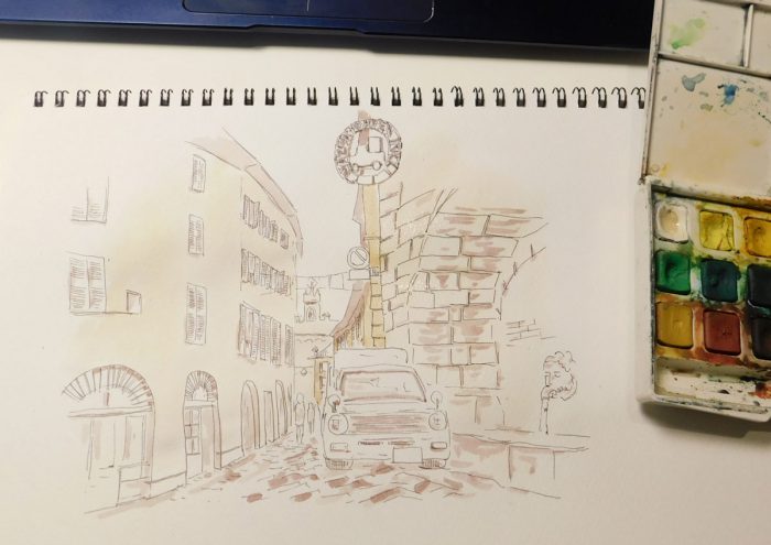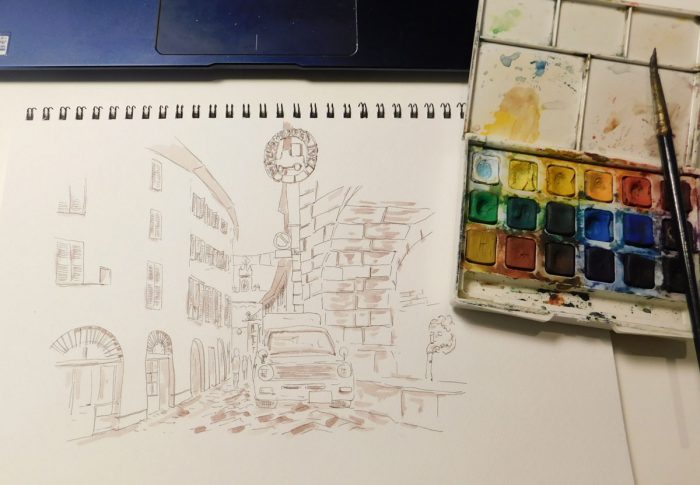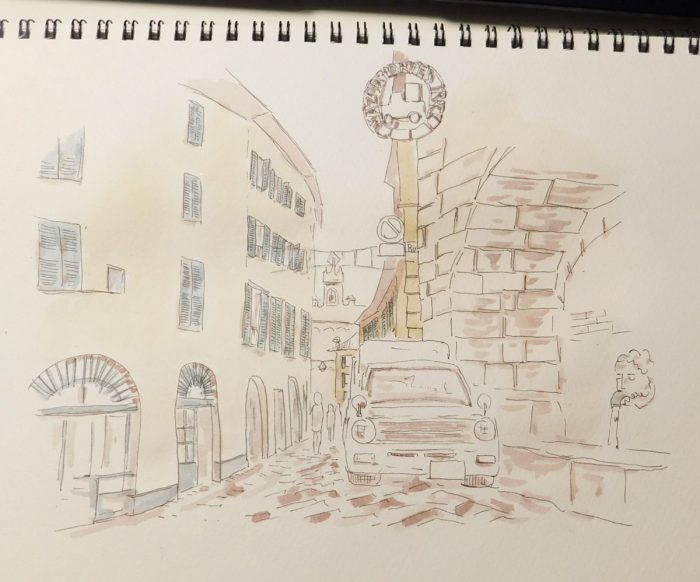 スケッチでは自転車が描かれていましたが、クルマに変更です!