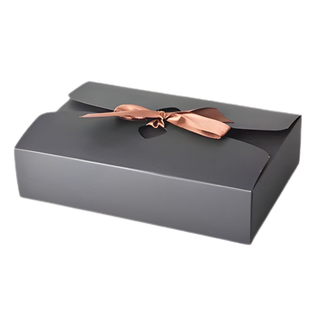 高級感のあるカラーのギフトボックス。シンプルながらも上品な雰囲気を演出し、特別な贈り物をより引き立てます。ハンドメイド作品や手作りお菓子のラッピングにぴったりです。